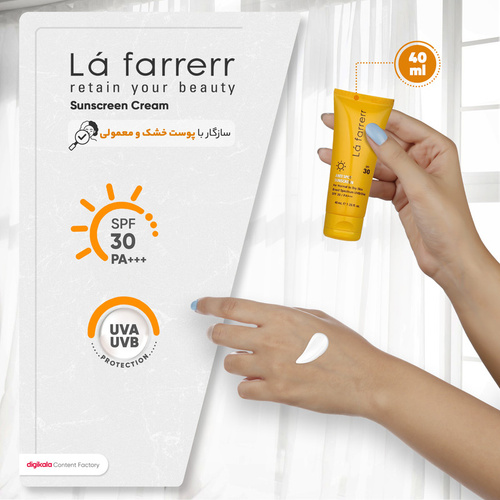 کرم ضدآفتاب و ضدلک بیرنگ لافارر مدل SPF30، مناسب پوستهای خشک و معمولی، حجم 40 میلیلیتر