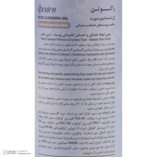 ژل شستشو صورت راکوتن مدل DS مناسب پوست های خشک و حساس حجم 200 میلی لیتر