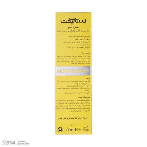 مشخصات سرم مو درمالیفت مدل Vita Dry مناسب موهای خشک و آسیب دیده
