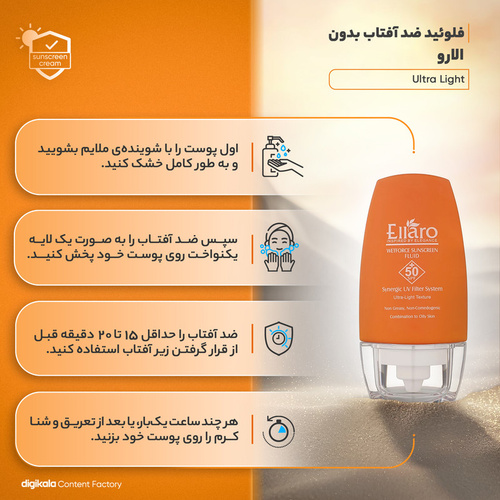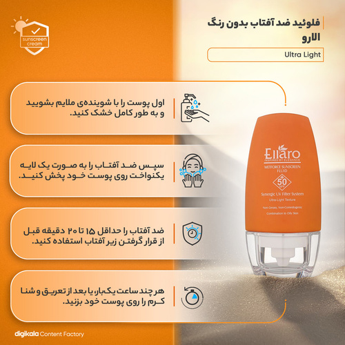 نحوه استفاده از فلوئید ضد آفتاب الارو SPF50 مدل Ultra Light
