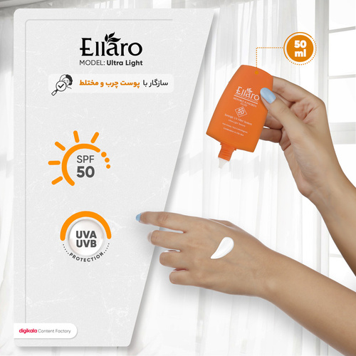 در نهایت، فلوئید ضد آفتاب بدون رنگ الارو SPF50 مدل Ultra Light تحت لیسانس، با ترکیبی از محافظت قوی، بافت سبک و ترکیبات مرطوبکننده، انتخابی ایدهآل برای افرادی با پوست چرب و مختلط است. استفاده منظم از این محصول میتواند به حفظ سلامت و شادابی پوست در برابر آسیبهای ناشی از تابش خورشید کمک کند.