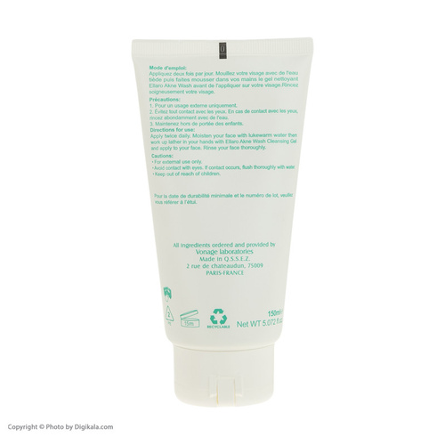 ترکیبات مؤثر ژل شستشو الارو مدل Akne Wash